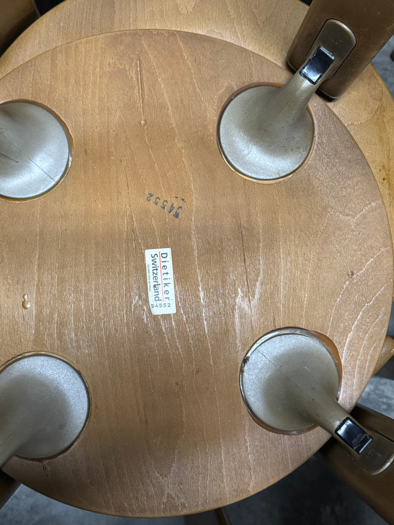 Ideata da Bruno Rey negli anni 70, prodotta da Dietiker dal 1971. Presenta tecniche di assemblaggio e progettazione completamente innovative per il periodo, con un brevetto per il suo esclusivo collegamento legno-metallo senza viti. Le gambe della sedia sono collegate alla seduta tonda per mezzo di pezzi di collegamento in alluminio.